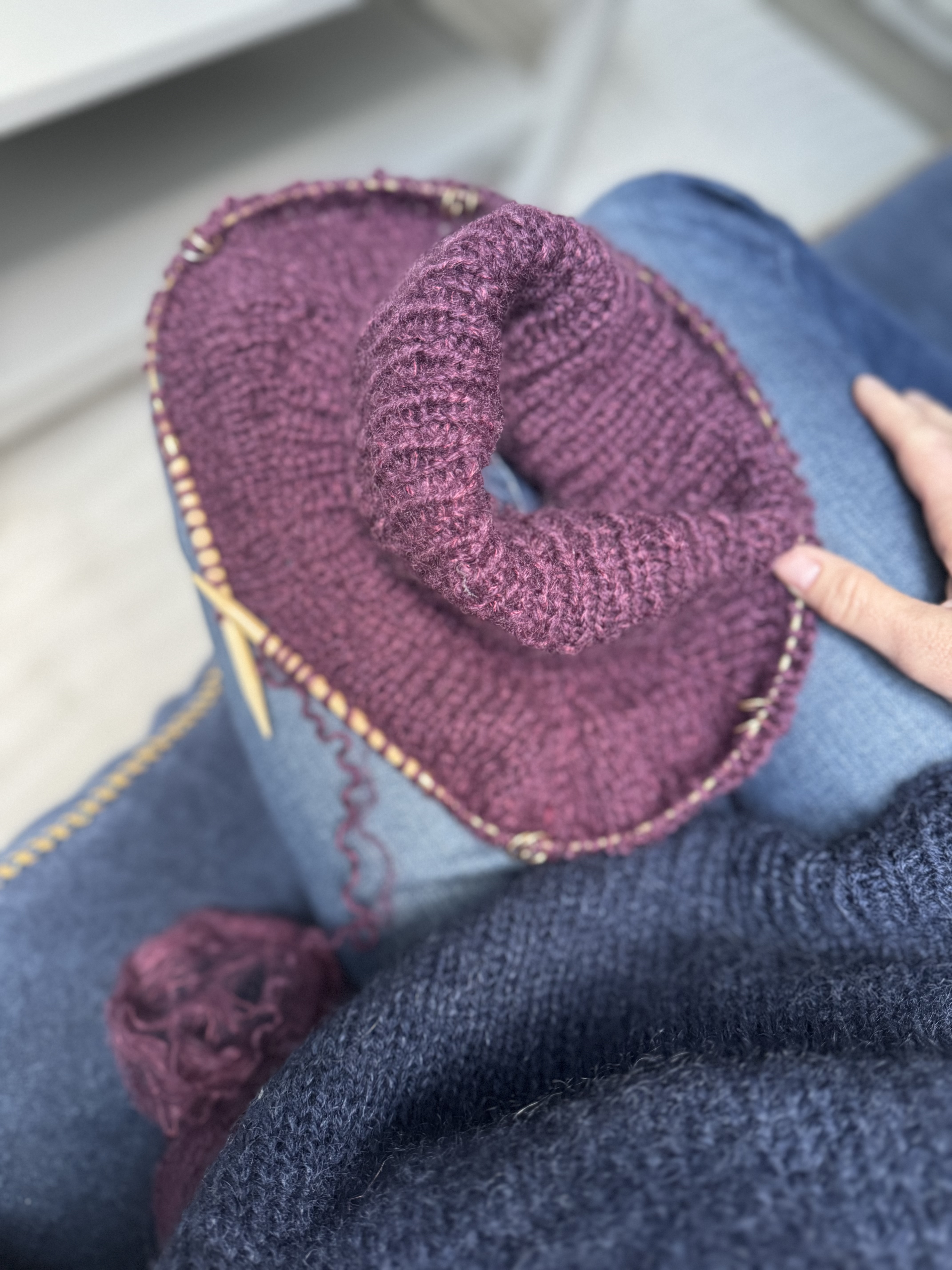 14 masker/10 cm glattstrikk på pinne 7 mm