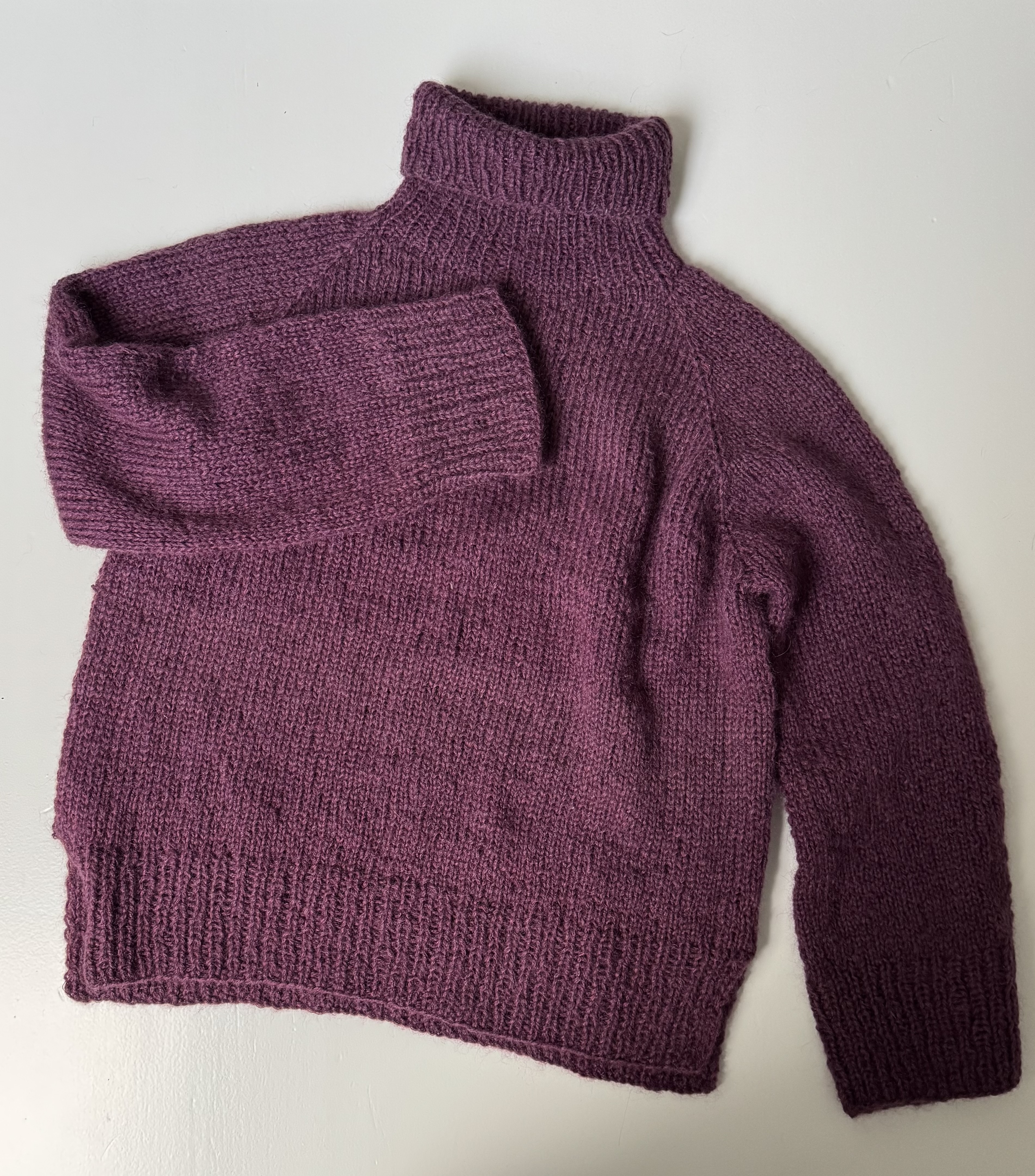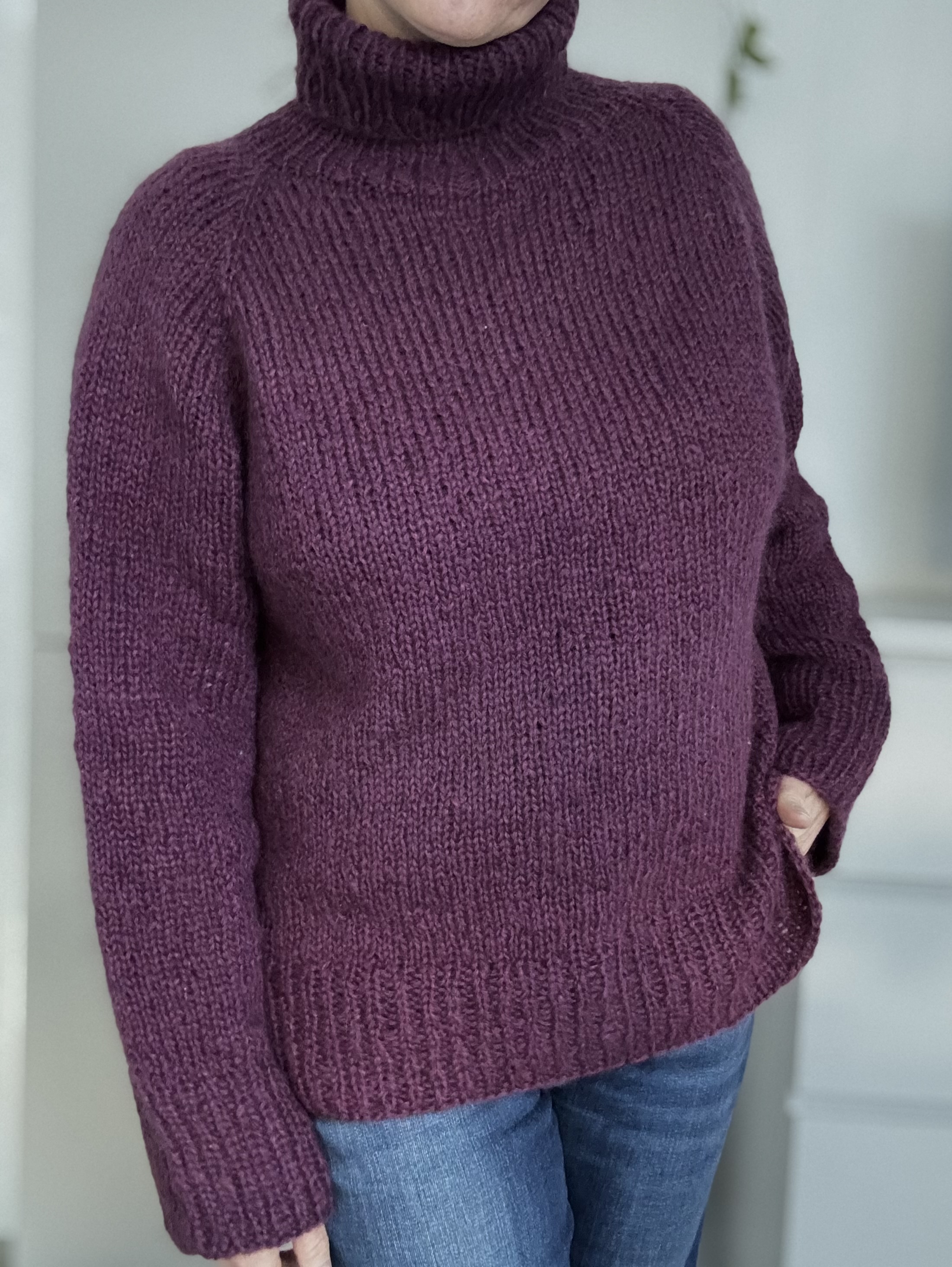 Raglangenser strikkes ovenfra og ned, enten med høy hals eller dobbel halskant. Bolen strikkes rundt. Ermene strikkes rett ned med magic loop og avsluttes med tettsittende vrangbord. Genseren er ment å ha en bevegelsesvidde på 8-15 cm.