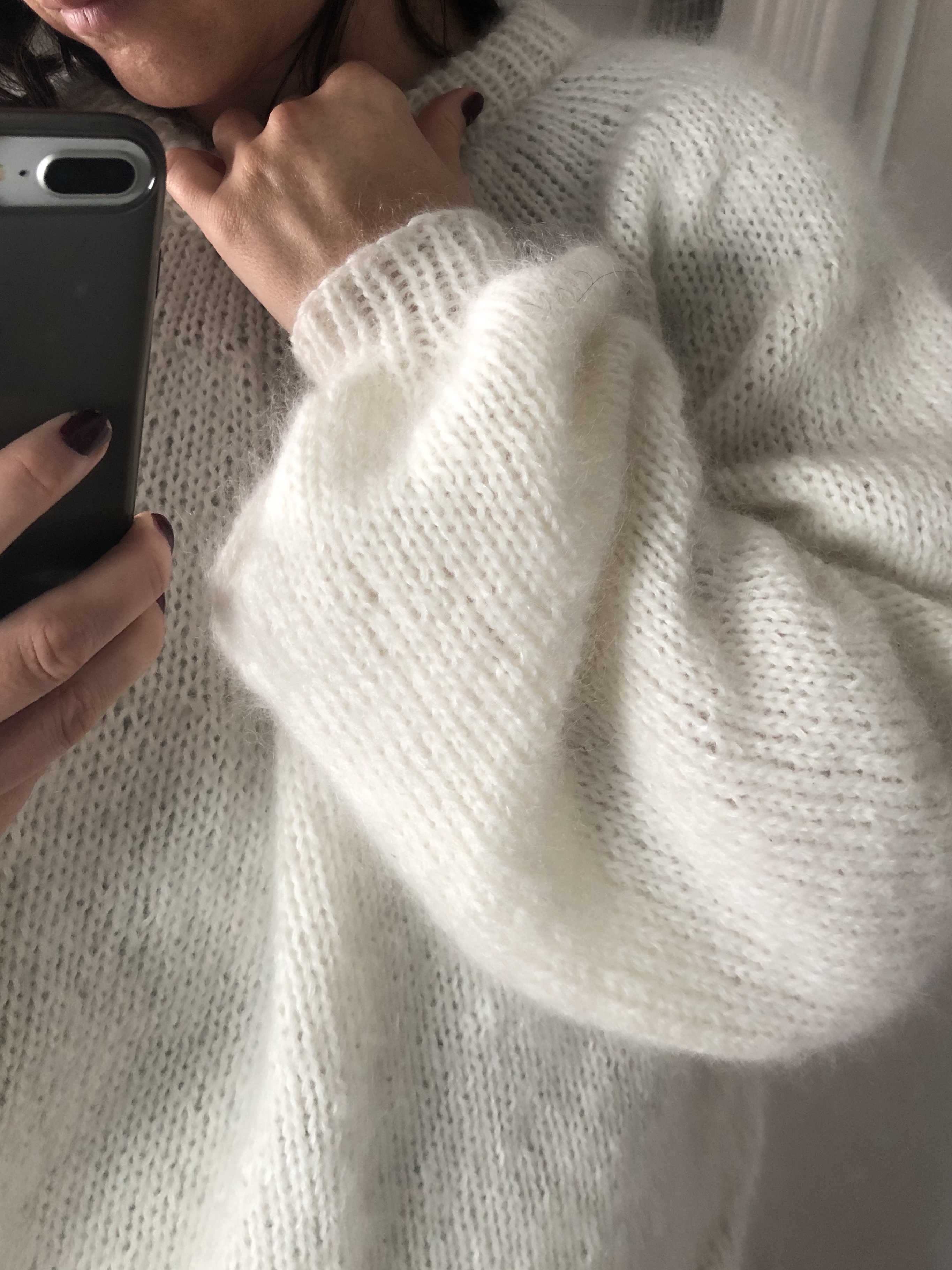 Når du forstår hva oppskriften faktisk ber deg om å gjøre. Hendene finner rytmen. Skuldrene senker seg. Når genseren vokser i fanget ditt og du kan si: "Jeg lagde dette. Jeg kan jo dette."